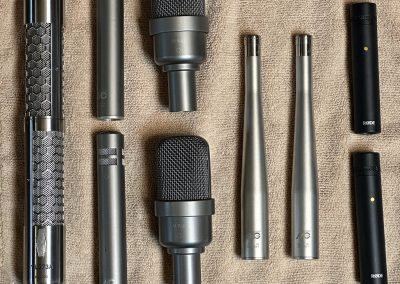Up close, a pair of Rode TF5 overheads provide unmatched articulation and detail to the attacks. At mid distance, legendary Microtech Gefell M221 measurement omnis capture the perfect blend of body and detail with ultra-thin nickel capsules and a perfectly flat response.